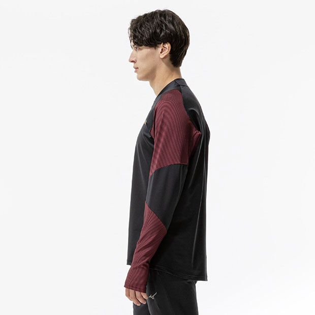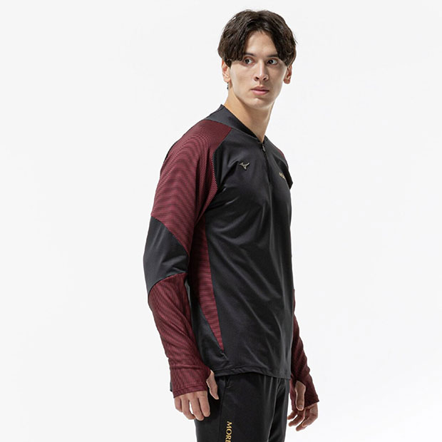 MORELIAシリーズのアパレルコレクション。動作性と快適性を備えた、パフォーマンス志向のトレーニングトップ。袖先はサムホール仕様。スタイリッシュなシルエット。