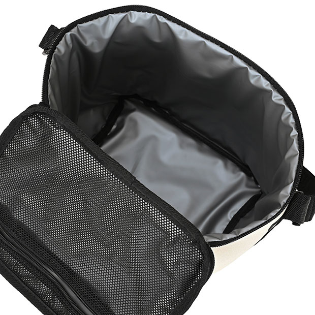 断熱効果のあるパッドを搭載し、温冷の両方に対応したスクエア型ショルダーバッグ。アウトドアやレジャーシーンで活躍。