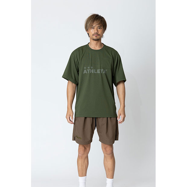 サステナブルライフスタイル「UPCYCLE」シリーズ。リサイクルポリエステルのコットンライク天竺素材を使用したショートスリーブシャツ。胸ポケット付き。