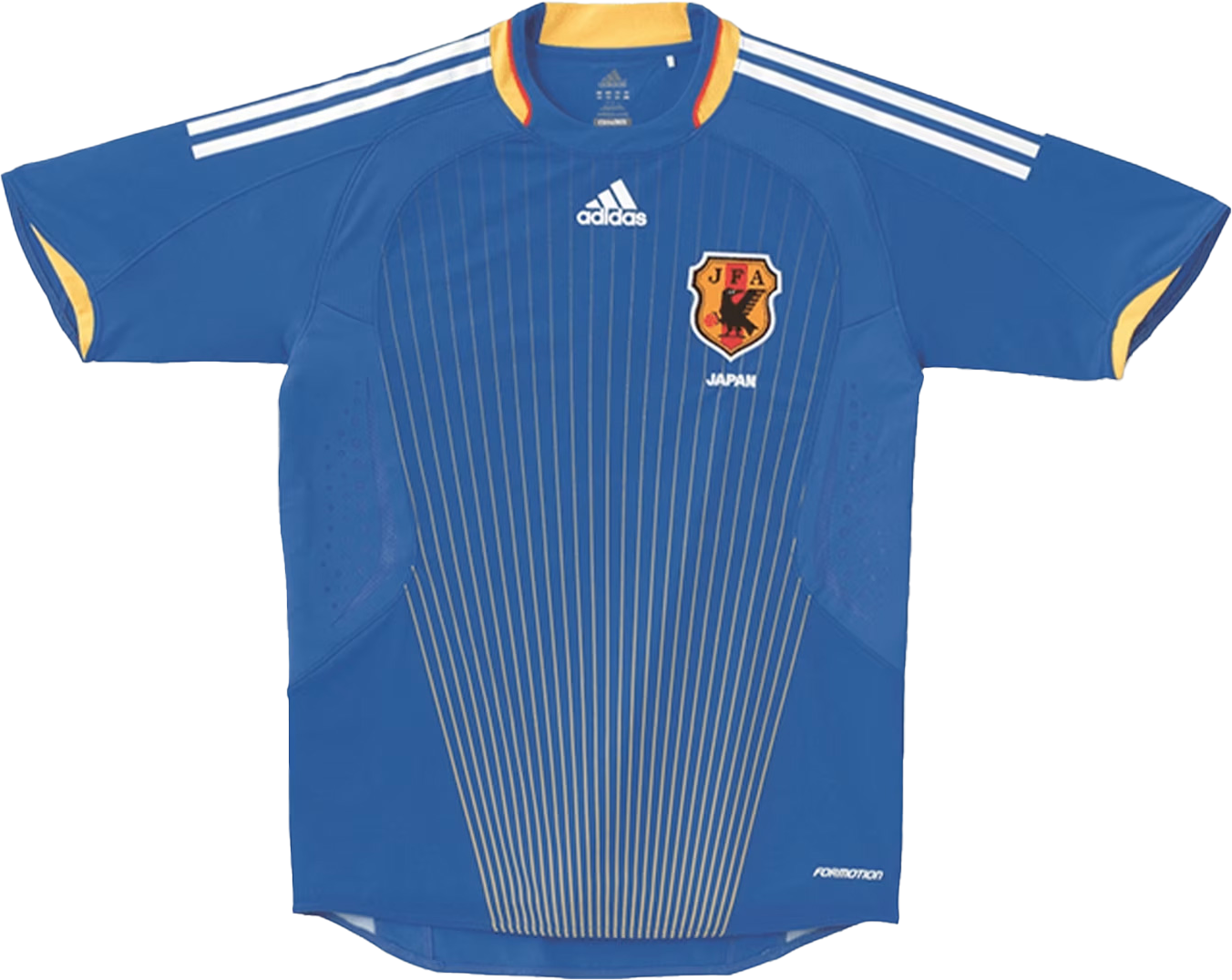 2006 FIFAワールドカップ ドイツ着用。サッカー日本代表のキャッチフレーズとなった「SAMURAI BLUE」にちなみ、日本の伝統と技術の象徴である「日本刀」をイメージした刃文をモチーフに、ジャパンブルーの美しい海に囲まれた国土から、淡いブルーの空(世界)へ高く羽ばたくイメージを表現している。