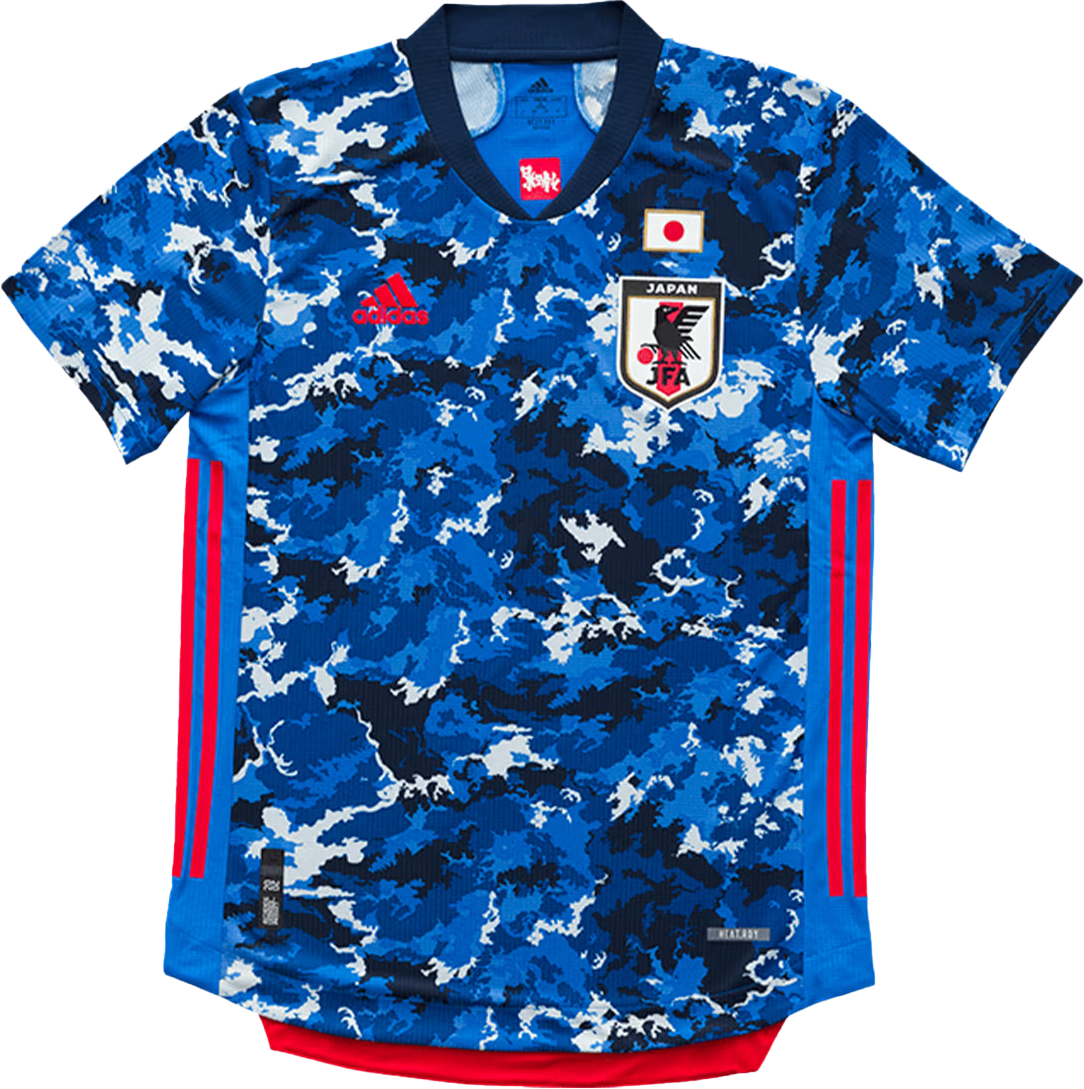 2022 FIFAワールドカップ カタール着用。2002年のFIFAワールドカップ決勝戦後に日本の空に舞い上がった折り鶴からヒントを得た「ORIGAMI」をコンセプトに、世界に挑み続けてきたサッカー日本代表のこれまでの軌跡と、「山折り、谷折り」を重ねることで進化するORIGAMIを掛け合わせて、勝利と歓喜への祈りを込めた「日本を、歓喜で染めろ。」というメッセージが込められている。