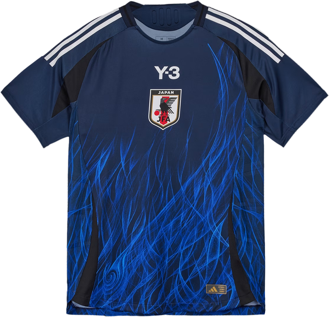 うねりを上げるそれぞれの小さな炎がひとつの大きな火柱となって燃え盛る。「FIRE(炎)」をテーマに、ヨウジヤマモトの精神を反映し、サッカー日本代表チームが持つエネルギーと力強さを表現したデザイン。炎は日本代表の力強さと日本の神秘性を象徴し、中心に描かれた「目」は選手やサポーターの想いが集まり昇華する様子を表現。