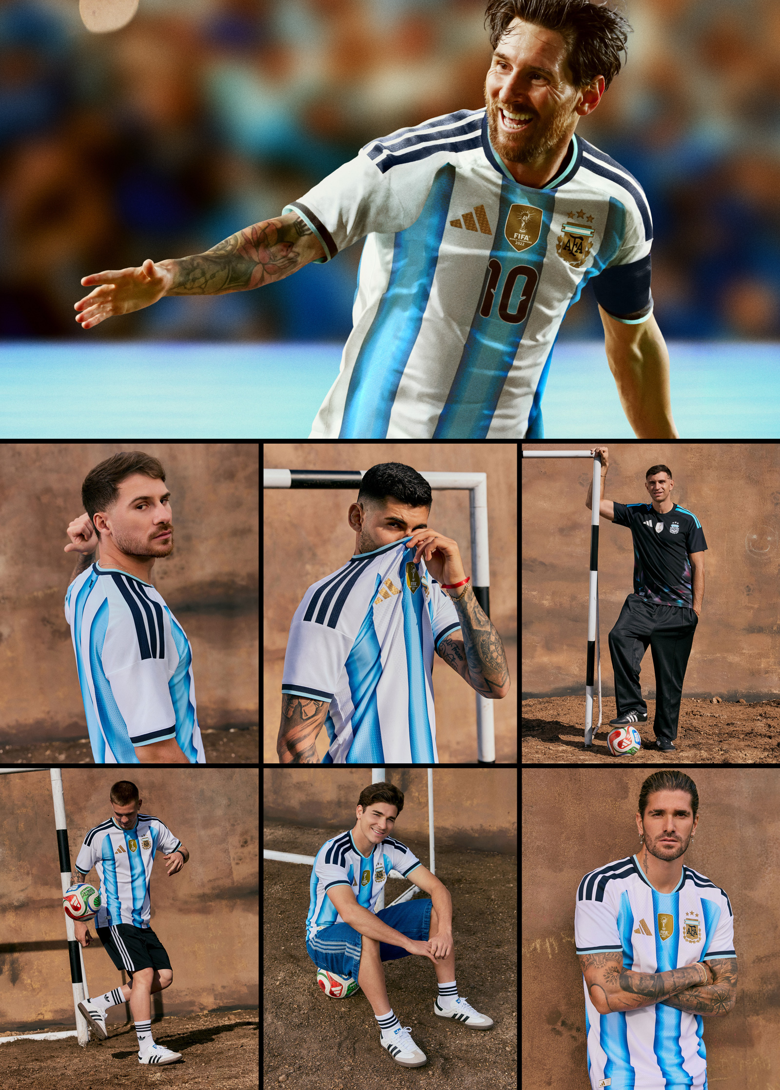 ホーム用ユニフォームには、1978年、1986年、2022年の優勝を達成した際に着用していたユニフォームにインスパイアされた、アルゼンチンサッカーのレガシーを称えるデザインを採用。