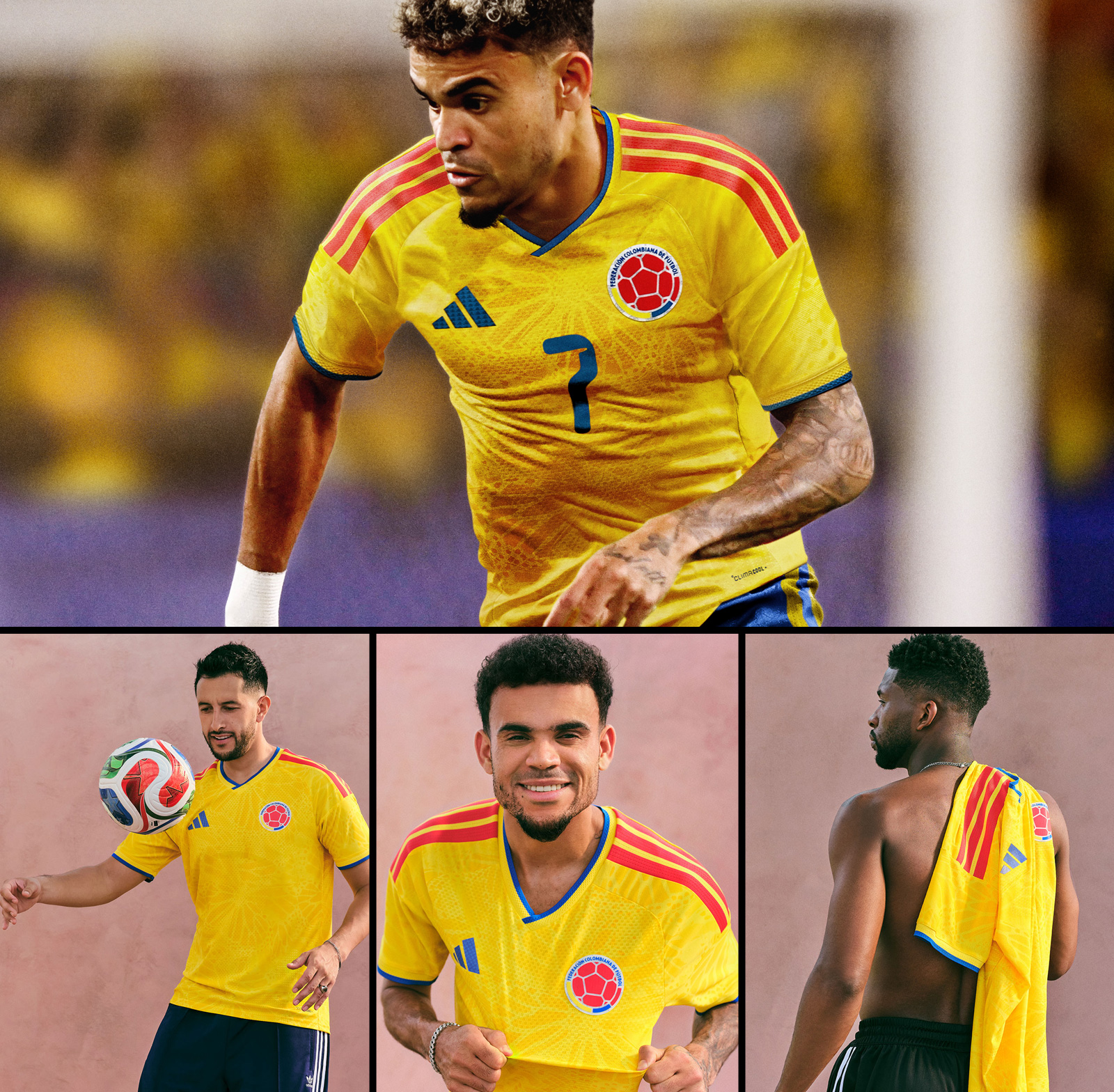 ホーム用ユニフォームには、マジックリアリズムにインスパイアされ、幻想的な要素と現実世界を融合してコロンビア文化の本質を表現したデザインを採用。