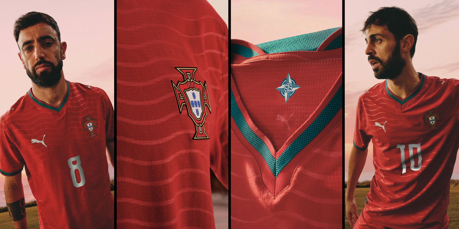 ホーム用ユニフォームは、情熱的なレッドカラーと洗練されたデザインを採用した、サッカー大国・ポルトガルの誇りを表現した一着。
