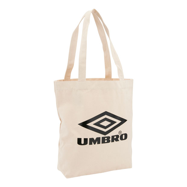 アンブロロゴ入りのコットンキャンバストート、Mサイズ。内ポケット付き。