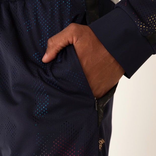 デザイン性と機能性を両立した「ORei」シリーズ。オリジナルジャガードメッシュにグラフィック裏地を組み合わせた、表地の表情やカラーが変化する移動用ウェア。