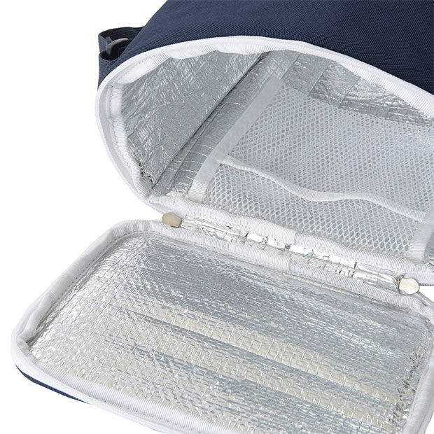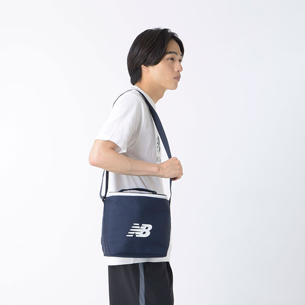 保冷力のあるアルミを内側に貼り付け、保冷剤用のメッシュポケットを備えたクーラーバッグ。500mlのペットボトルを6本を収納可能。ランチボックスやアイシング用の氷入れとしても活躍。長さが調整可能なショルダーストラップ付き。