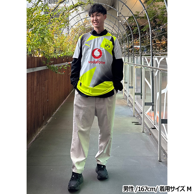選手着用ユニフォームのオーセンティックモデル。ホワイト、ブラック、そして鮮烈なボルトイエローを掛け合わせた、どんなスタジアムでも、どんな街でも目を引く、強烈な個性を放つデザイン。大人/メンズ用。