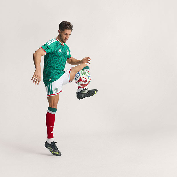 選手着用ユニフォームのオーセンティックモデル。チームを象徴するグリーンカラーでメキシコのサッカースピリットと世界最大のサッカーイベント開催国としての誇りを表現。優れた設計と先進素材を組み合わせたCLIMACOOL+テクノロジーが、ドライで快適なコンディションをキープ。スリムフィット仕様。大人/メンズ用。