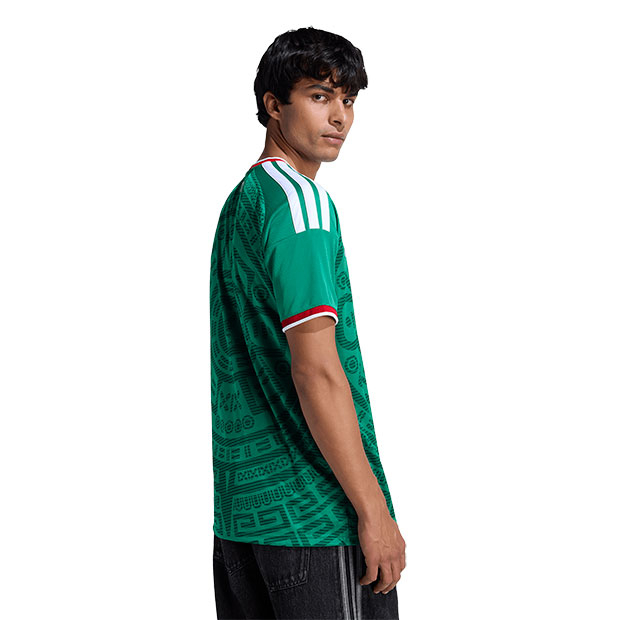 選手着用ユニフォームのレプリカモデル。チームを象徴するグリーンカラーでメキシコのサッカースピリットと世界最大のサッカーイベント開催国としての誇りを表現。生地に組み込まれたCLIMACOOLテクノロジーが汗を吸い上げて分散させ、涼しくドライな着用感をキープ。スリムフィット仕様。大人/メンズ用。