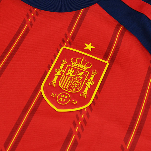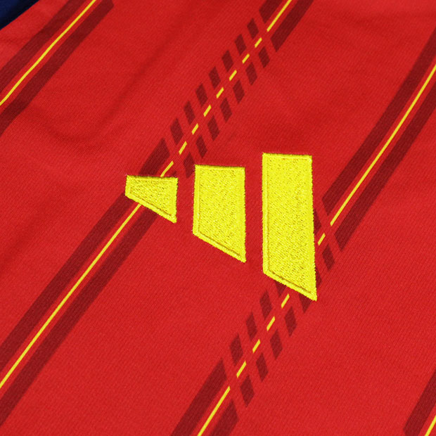 選手着用ユニフォームのレプリカモデル。スペイン国旗の鮮やかな色にインスパイアされた、スペインサッカーの情熱と伝統への敬意を表したデザイン。生地に組み込まれたCLIMACOOLテクノロジーが汗を吸い上げて分散させ、涼しくドライな着用感をキープ。スリムフィット仕様。大人/メンズ用。