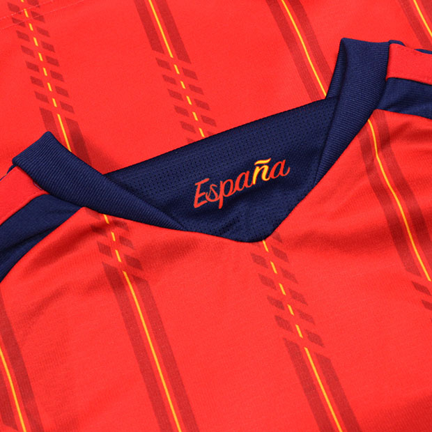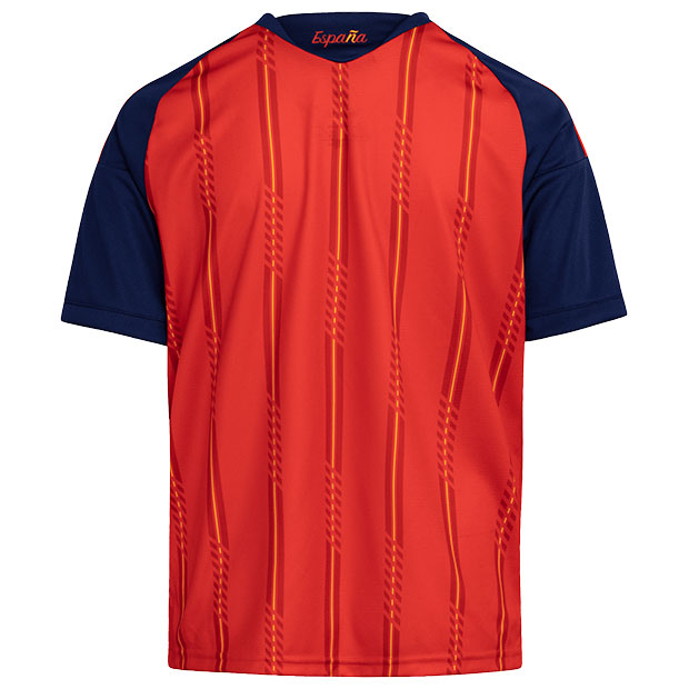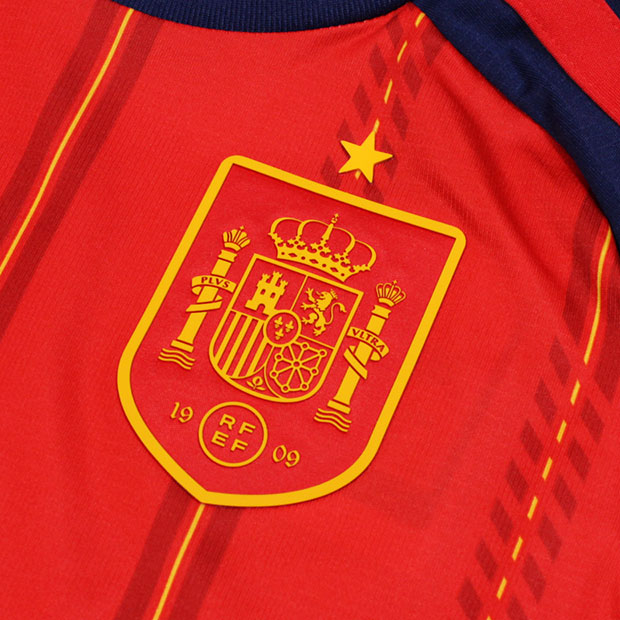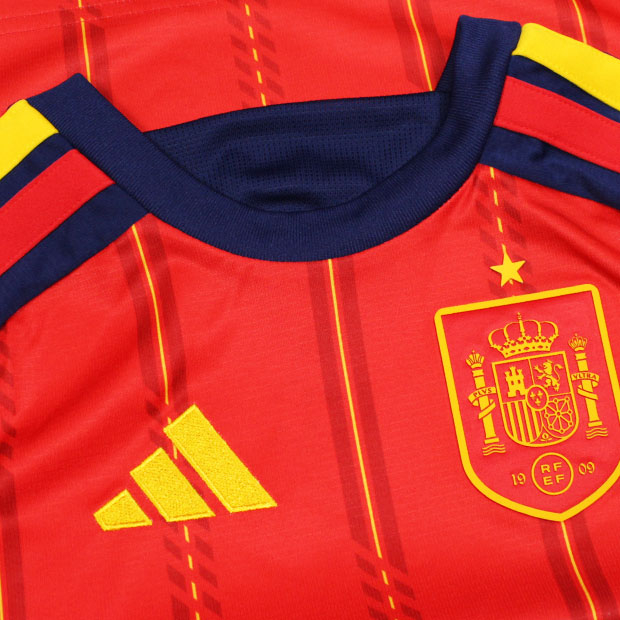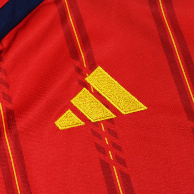選手着用ユニフォームのレプリカモデル。スペイン国旗の鮮やかな色にインスパイアされた、スペインサッカーの情熱と伝統への敬意を表したデザイン。生地に組み込まれたCLIMACOOLテクノロジーが汗を吸い上げて分散させ、涼しくドライな着用感をキープ。レギュラーフィット仕様。子供/ジュニア/キッズ用。