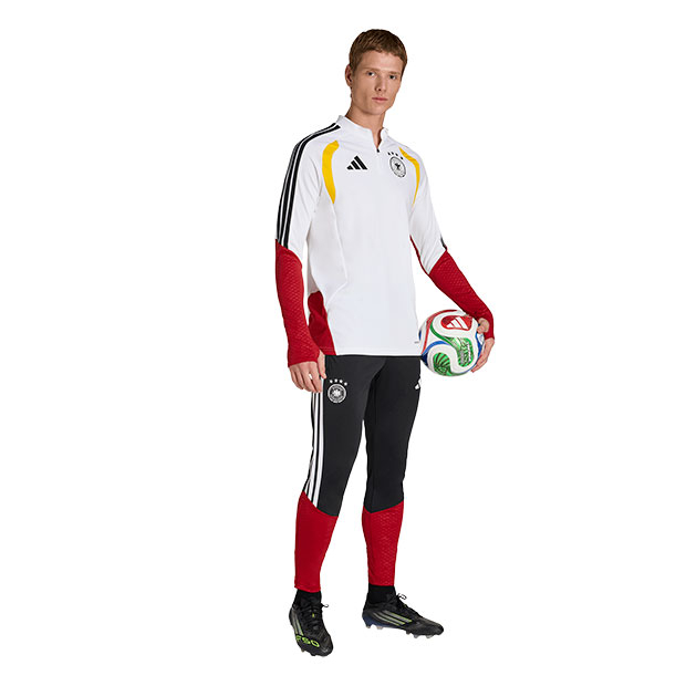 選手がトレーニング時に着用するトラックトップ。サッカーウェアの名作にルーツを持つティロシリーズ。革新的なカッティングと3次元のエンジニアリングにより最適なフィット感と快適さを実現する立体構造テクノロジー「FORMOTION」を採用。スリムフィット仕様。