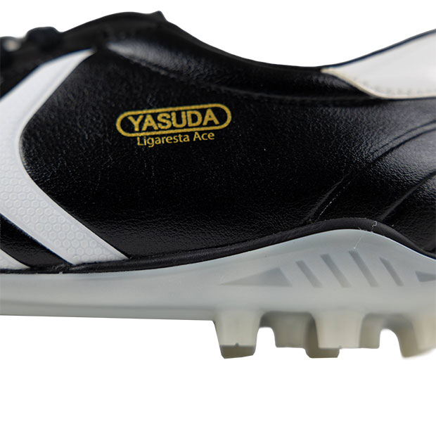 YASUDA伝統モデルシリーズ「Ligaresta」、身体への負担がかかりやすいピッチにおいて、プレイヤーがより長く快適にプレーし続けるためのサッカースパイク。これまでのスパイクにはないクッション性に優れたミッドソールを内蔵。独自配置の27本マルチスタッドが体圧を分散させ、足裏や膝への突き上げを劇的に軽減。アッパーに、天然皮革のようにしなやかで耐久性に優れた独自素材「YSテックレザー」を採用。シュータンとアッパーの一体化構造により、足全体を包み込むホールド感を実現。