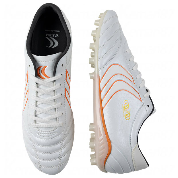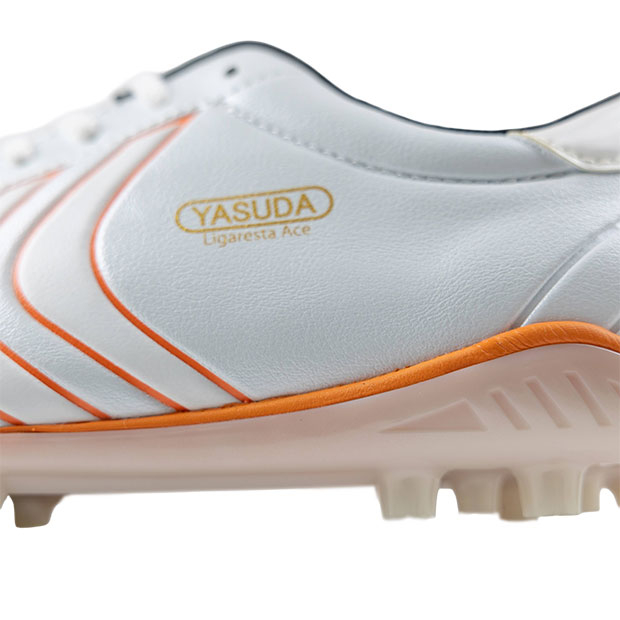 YASUDA伝統モデルシリーズ「Ligaresta」、身体への負担がかかりやすいピッチにおいて、プレイヤーがより長く快適にプレーし続けるためのサッカースパイク。これまでのスパイクにはないクッション性に優れたミッドソールを内蔵。独自配置の27本マルチスタッドが体圧を分散させ、足裏や膝への突き上げを劇的に軽減。アッパーに、天然皮革のようにしなやかで耐久性に優れた独自素材「YSテックレザー」を採用。シュータンとアッパーの一体化構造により、足全体を包み込むホールド感を実現。専用のワイドラストを採用し、指周りのゆとりを確保。