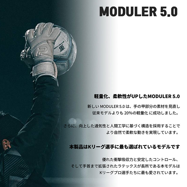 Kリーグのプロ選手に最も選ばれているモデル。優れた衝撃吸収と安定したコントロール、手首まで拡張されたラテックスが特徴的。Kemari87別注カラー仕様。