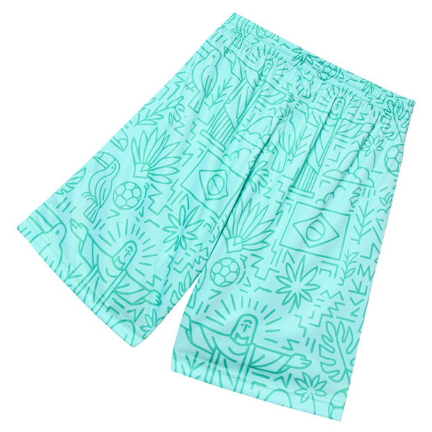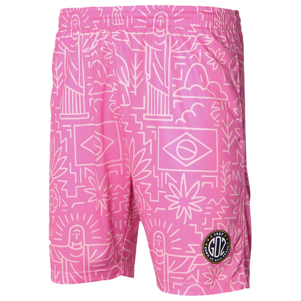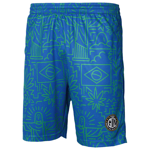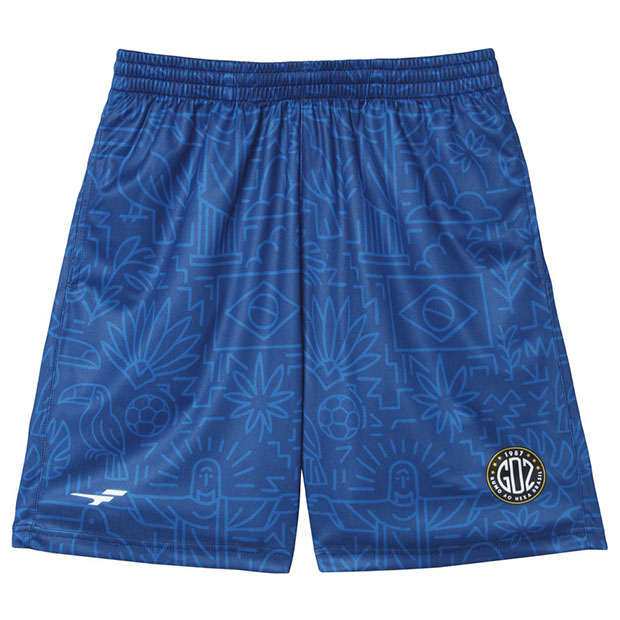フットボールカルチャー色の強い「カルチャー」カテゴリ、FINTAの人気アイコン「Grandeza」を採用した「GDZ」シリーズのハーフパンツ。ブラジルをイメージした昇華総柄グラフィックが印象的。
