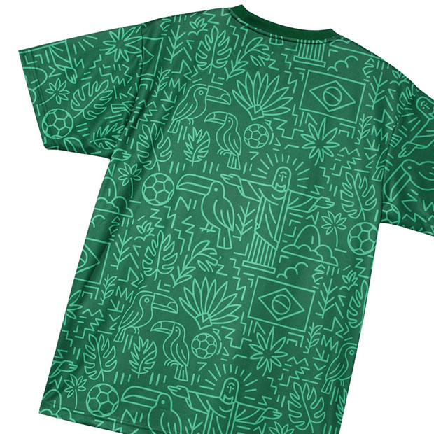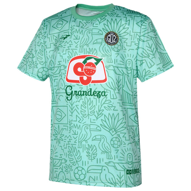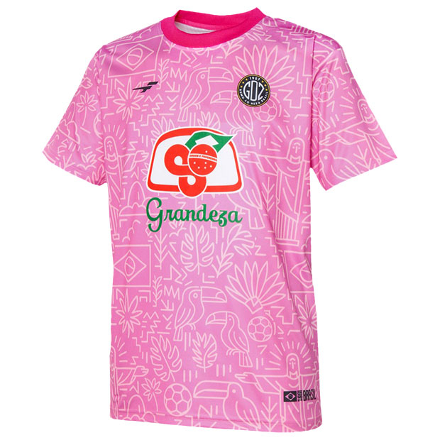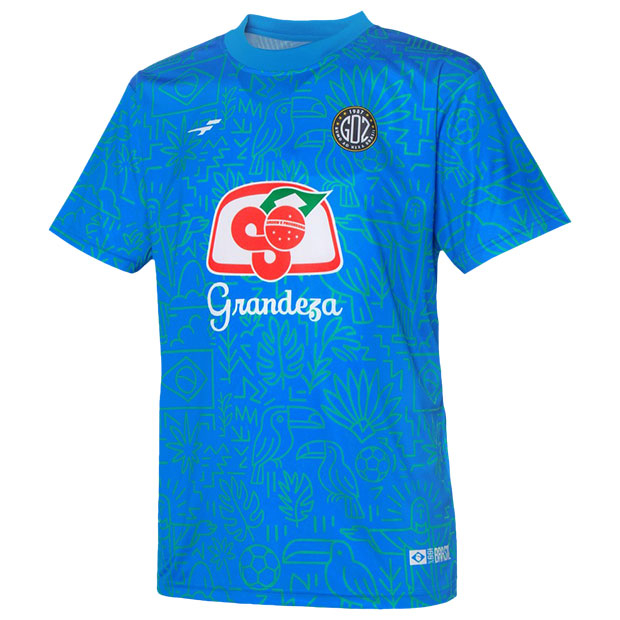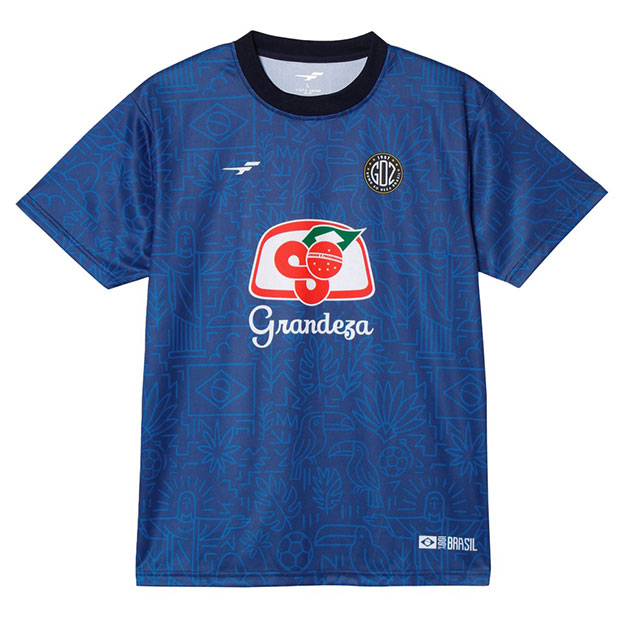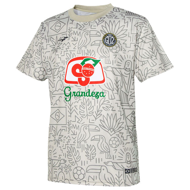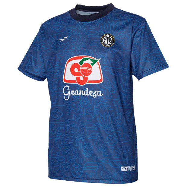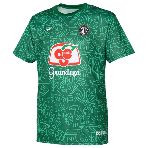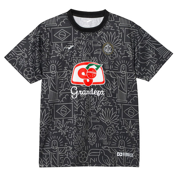 フットボールカルチャー色の強い「カルチャー」カテゴリ、FINTAの人気アイコン「Grandeza」を採用した「GDZ」シリーズのショートスリーブシャツ。ブラジルをイメージした昇華総柄グラフィックが印象的。