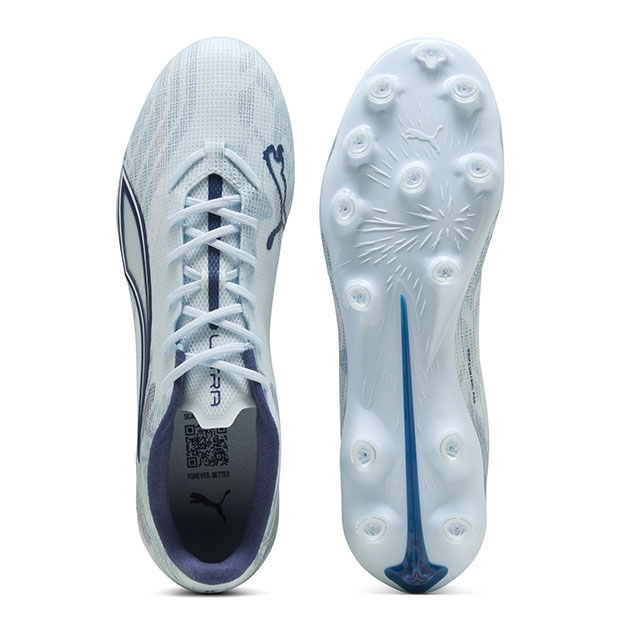 異次元のスピードでゲームを支配するスピードブーツ、プロモデルスパイク。更なるスピードを生み出す軽量メッシュアッパーに、ボールコントロールとシューズの保形性をサポートする極薄のグリップ素材を採用。サポート素材「PWRTAPE」を配置することで、更なる柔軟性と保形性、サポート性を実現。ウルトラの特徴である加速力を発揮する軽量アウトソールを搭載。ジャパンラスト搭載モデル。