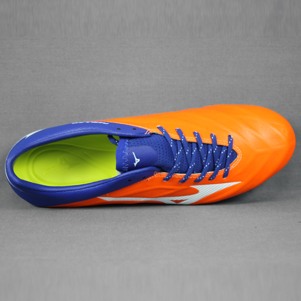 コントロールとスピードを併せ持つ「REBULA」第二世代、フィット感と軽量性をバランスよく併せ持ったマイクロファイバー採用のミドルモデル。アッパー内側のCTフレームが繊細なボールコントロールを実現。ミズノ独自機能「D-FLEX GROOVE」で高速ターン時の蹴り出しをサポート。足の横ズレを抑制するZEROGLIDEカップインソールを搭載。より繊細なボールタッチ・フィット感の向上を実現するタングバンドを採用。