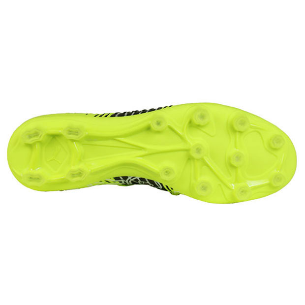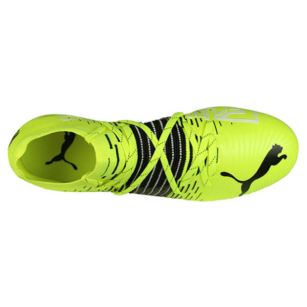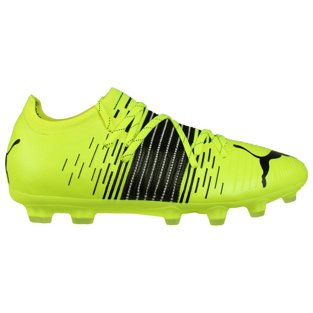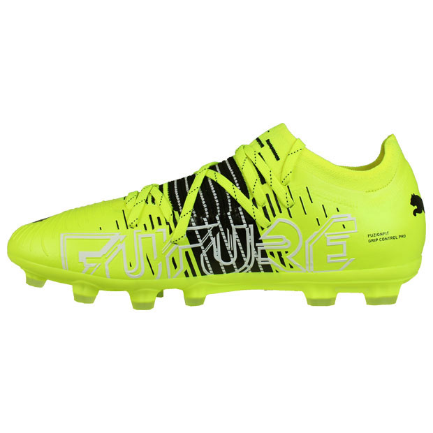 「次世代のサッカーシューズ」がコンセプトのフューチャーシリーズ。フィット性を追求したFUZIONFITを中足部に使用。ステップインタイプのニットアッパー。ハード・人工芝グラウンド対応のHGモデル。