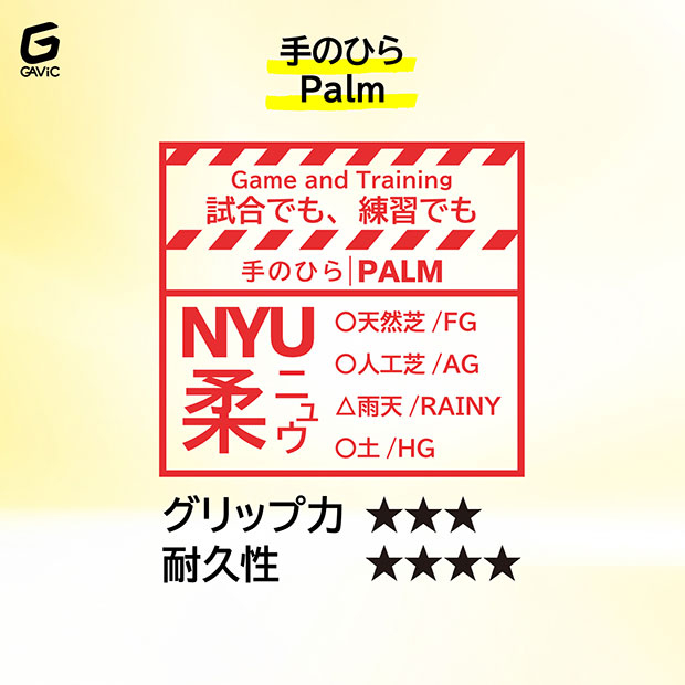 素材:パーム/柔(試合にも練習にも最適) バックハンド/ヒガキGRIP 内部/ノンスリップゲル