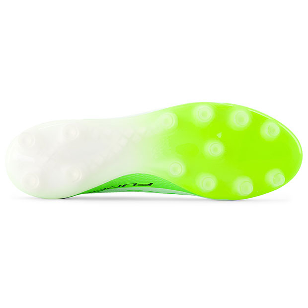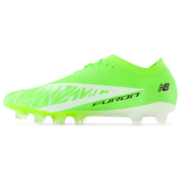 圧倒的な軽さが特長のストライカー向けスピードモデル「FURON」。アッパーに細さを変えた糸をデータに基づいて編み込んだHYPOKNITを使用し、高いサポート性と履き心地を提供。軽量性・機動性に優れるHGプレートが、プレー中の安定性と爆発的な加速をサポート。甲のストライクゾーンを広くクリアに確保した、NB史上最軽量スパイク。