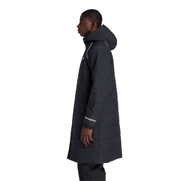 プレイヤーの移動やスポーツ観戦に最適な防寒用パデッドロングコート。中綿入り。