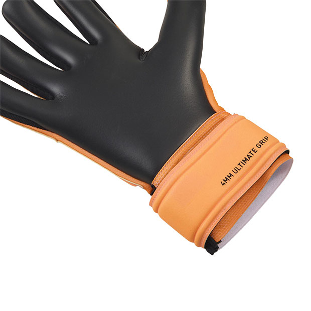 ウルトラシリーズとデザイン連動したゴールキーパーグローブ。あらゆるコンディションで最高のグリップ力を発揮する4mmのラテックス製パームを搭載。ネガティブカットモデル。リストストラップを搭載。