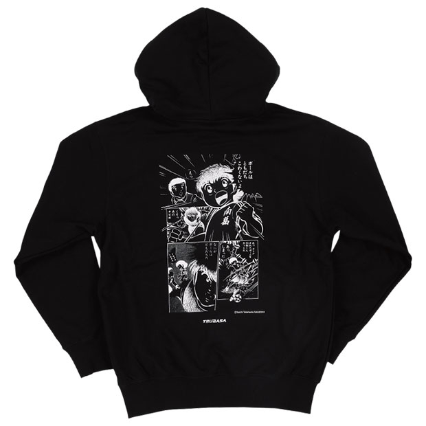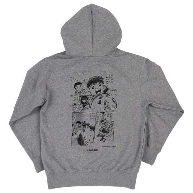前面に「THE BALL IS MY FRIEND」のメッセージ、背面にキャプテン翼のプリントが入ったプルオーバーパーカー。