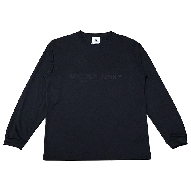 サッカージャンキーの定番になりつつある、サークルロゴとブランドメッセージが背中にプリントされたロングスリーブシャツ。