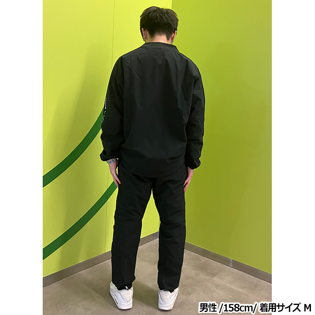 シンプルなデザインに袖のロゴプリントがアクセントになったピステトップ。軽量で動きやすいストレッチ素材を使用。裏地にトリコット素材を使用。