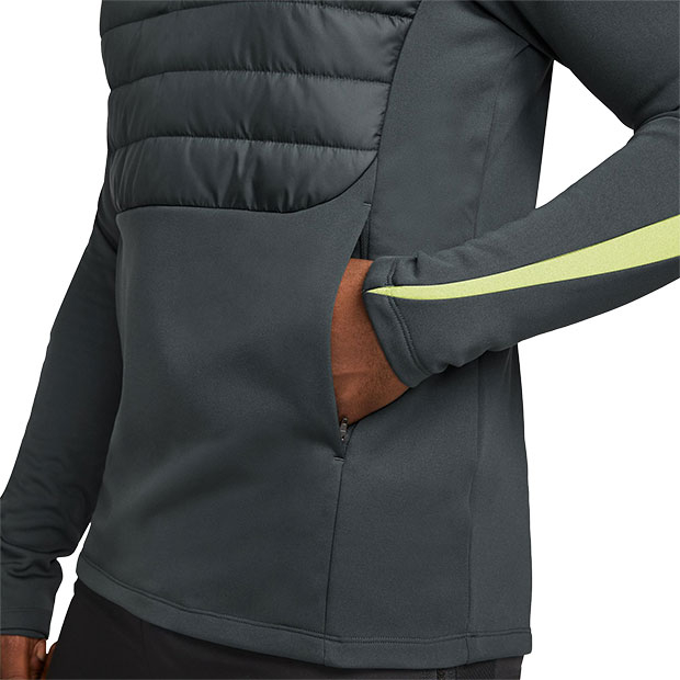 断熱性に優れたキルト加工の中綿チェストパネルを搭載したハーフジップトップ。Nike Therma-FITテクノロジーが体温調節をサポートし、寒い日も暖かい着心地をキープ。ゆったりとしたフィット感のシルエット。