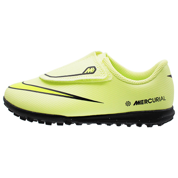 爆発的な加速力で他のプレーヤーを圧倒するマーキュリアルシリーズ、エントリーターフモデル。ベルクロ仕様。