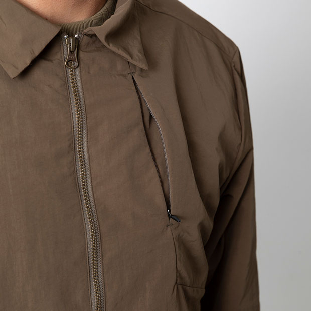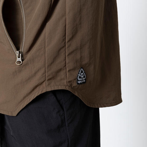 サステナブルライフスタイル「UPCYCLE」シリーズ。リサイクルナイロンを使用したタッサー素材を使用したフルジップジャケット。
