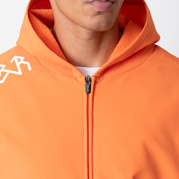 「ブラジル」というキーワードを基に、スポーツウェアの機能性とファッション性を融合した、ATHLETAのカジュアルライン「BomBR(ボン・ビーアール)」。撥水・透湿・保温性に優れた高機能性素材「ストームフリース」を使用したフルジップフーディ。