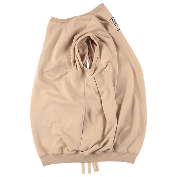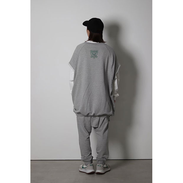 ファッションアイテムながらフットバールシーンでの実用性も高く、コーディネイトの幅を広げられる一着。アウターとしても活躍する薄めの裏毛仕様。リラックスフィットシルエット。