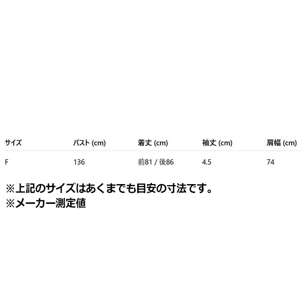 サイズ:F(バスト約136cm、着丈前約81cm、後約86cm、袖丈約4.5cm、肩幅約74cm)