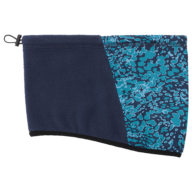 定番の防寒アクセサリー。生命の鼓動をイメージしたダイナミックなグラフィックが特徴的。正面に防風性に優れた布帛素材、背面に通気性に優れたフリース素材を使用し、快適さと機能性を両立。ドローコードでフィット感の調節が可能。