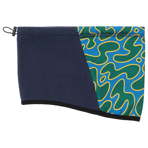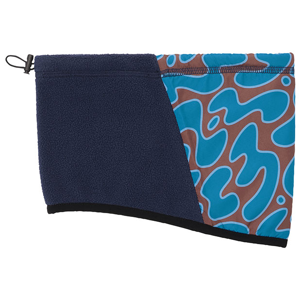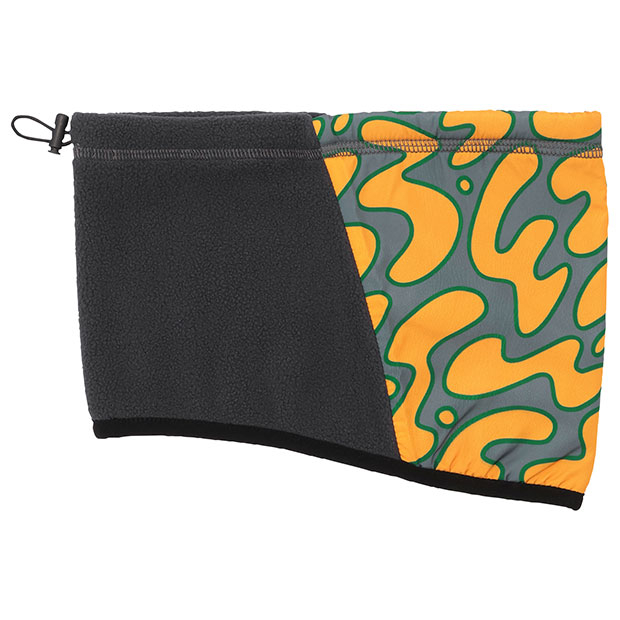 定番の防寒アクセサリー。生命の鼓動をイメージしたダイナミックなグラフィックが特徴的。正面に防風性に優れた布帛素材、背面に通気性に優れたフリース素材を使用し、快適さと機能性を両立。ドローコードでフィット感の調節が可能。