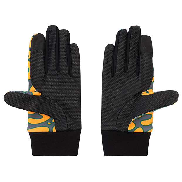 定番の防寒アクセサリー。生命の鼓動をイメージしたダイナミックなグラフィックが特徴的。手の甲に暖かい起毛生地を使用。スポーツシーンから日常使いまで幅広く活躍。手の平は滑り止め仕様。