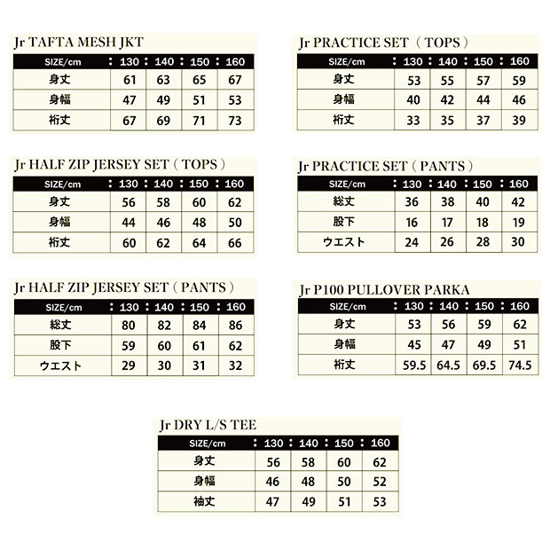 ※既存アイテムはXSサイズの商品が入る場合があります(160サイズのみ)