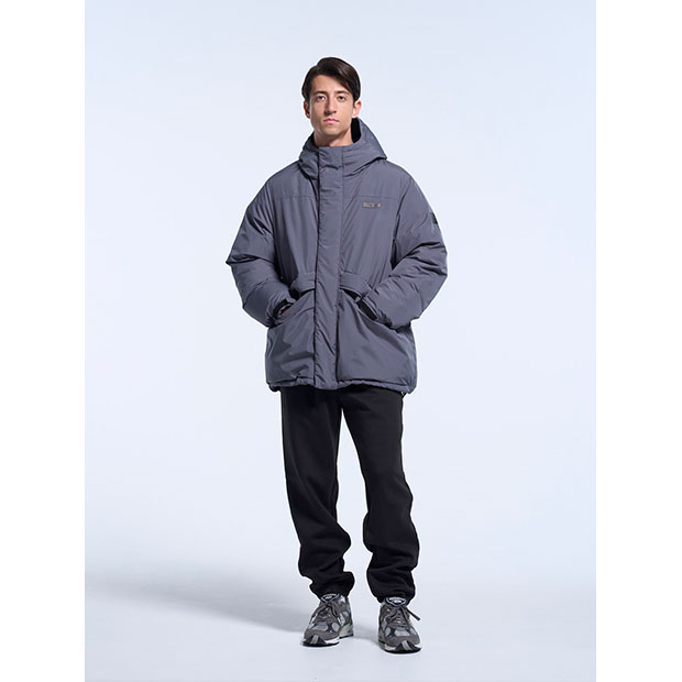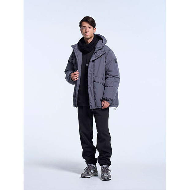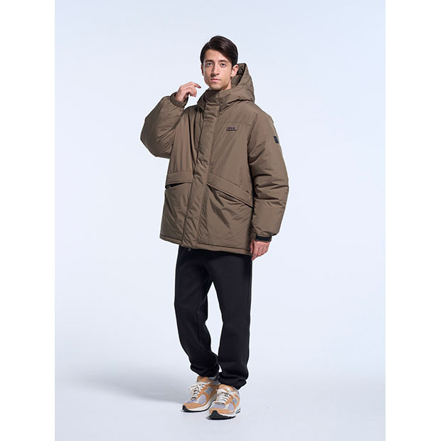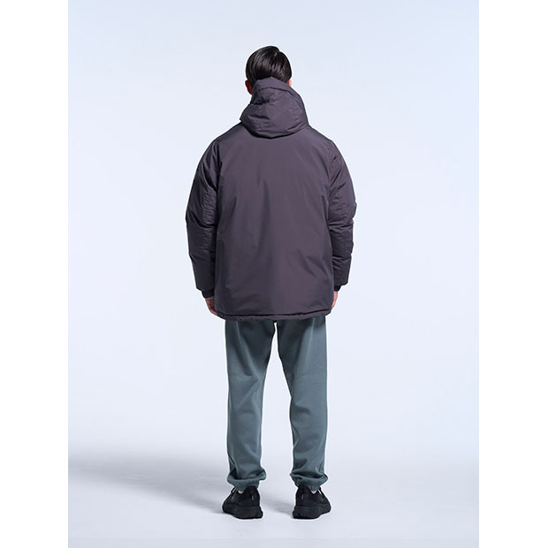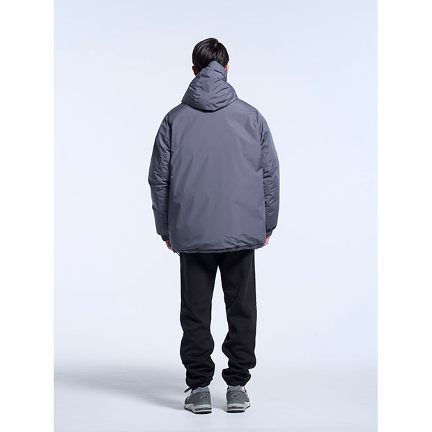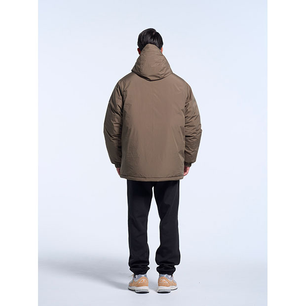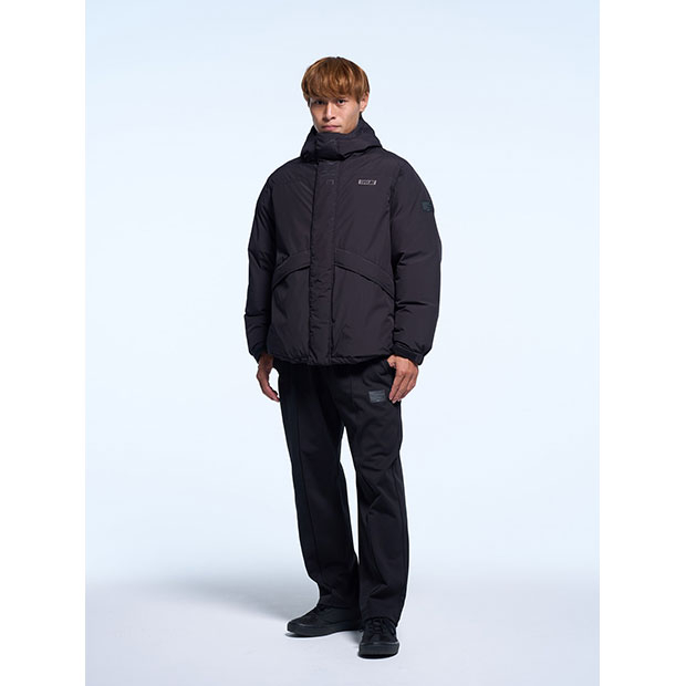 SPORTS LIFESTYLEシリーズの中綿入りジャケット。様々なコーディネートに合わせやすいシンプルなデザイン。保温性に優れた中綿素材を使用。