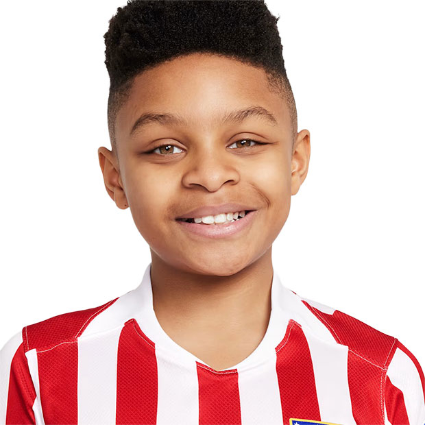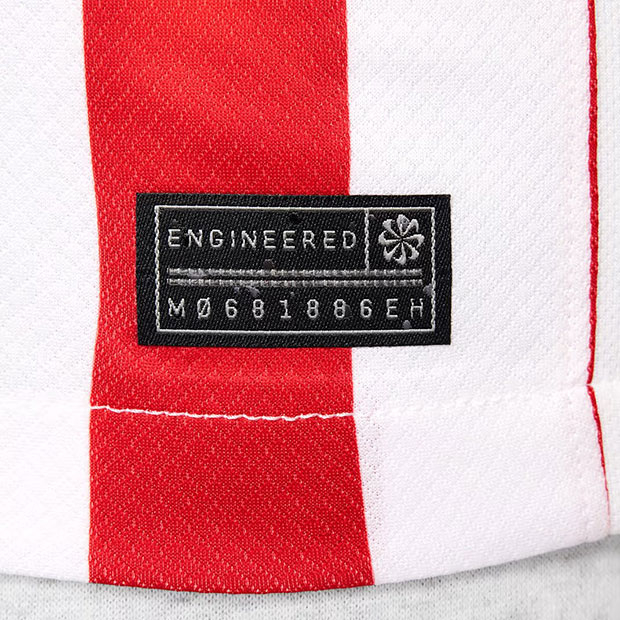 選手着用ユニフォームのレプリカモデル。クラブの伝統的なホワイトとレッドのストライプにホワイトの襟を組み合わせた、クラシックなスタイル。Dri-FIT素材によりさらりと快適な着用感をキープ。子供/ジュニア/キッズ用。