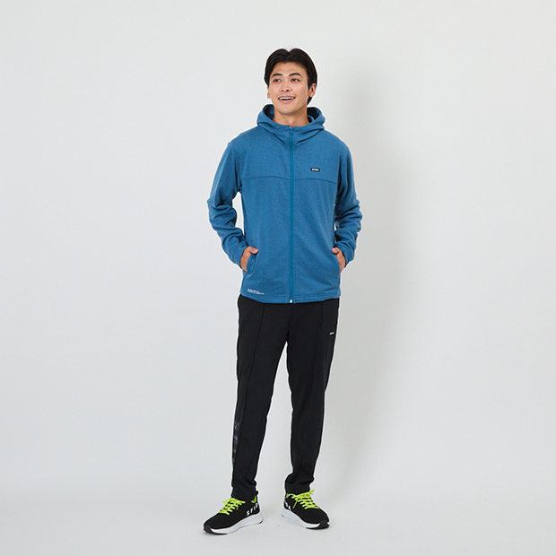 高機能と風合いを両立させたフルジップパーカー。優れた吸水速乾性を持つ特殊なMVSポリエステル糸を使用。コットンのような柔らかく優しい肌触りを実現。抗ピリング性と耐摩耗性に優れており、毛玉ができにくい。両サイドには便利なポケット付き。