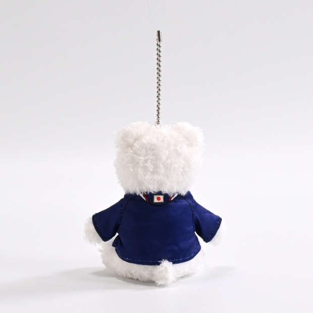 定番のサポーターズアイテム。ユニフォームを着用したかわいいくまのぬいぐるみキーホルダー。