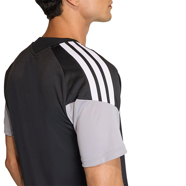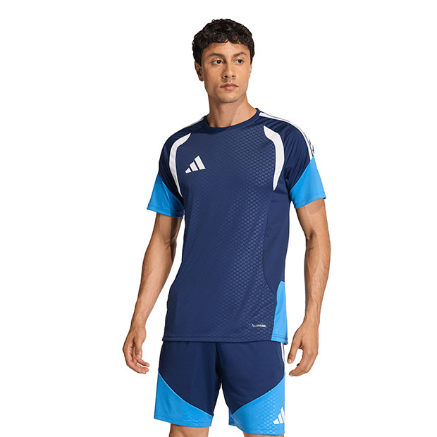 サッカーウェアの名作にルーツを持つティロシリーズ。エンボス加工のフロントパネルと通気性に優れたメッシュのチェストインサートが、トレーニングで発する熱を解放し、涼しく快適なコンディションを維持。CLIMACOOLテクノロジーにより、汗を吸い上げて分散させ、涼しくドライな着心地を実現。スリムフィット仕様。