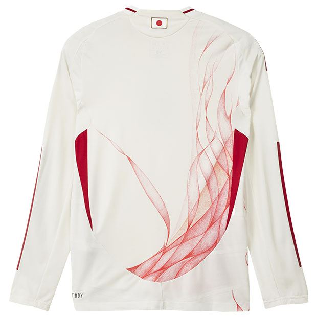 日本代表のコアなファン(サポーター)が応援・観戦に用いる選手着用モデルユニホーム。日本代表のダイナミックなプレーと、サポーターの熱き情熱を象徴するかのような、うねりを上げて燃え上がるハンドペイントの炎のグラフィックをあしらった、Y-3とのコラボレーションデザイン。通気を促すHEAT.RDYテクノロジーを採用した素材を使用。スリムフィット仕様。大人/メンズ用。
