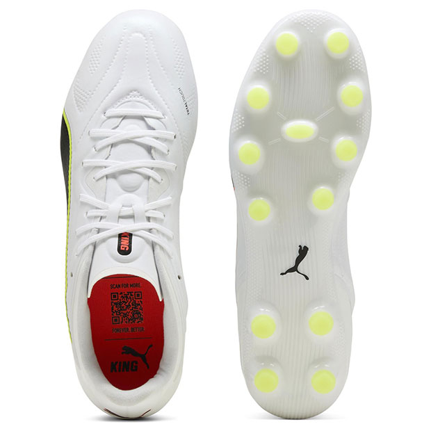 プーマのボールコントロールの技術を全て詰め込んだ、さらに優れた新世代のKINGシリーズ、プロモデルスパイク。優れたタッチ感と快適なフィッティングが特徴的なTOTALTouchアッパーを搭載。耐久性に優れたアウトソールを搭載。低反発素材「Ortholite」を使用したインソールを採用。ジャパンラスト搭載モデル。